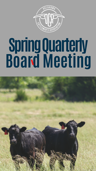 The OCA Spring Quarterly Board Meeting is an important opportunity for leadership and members to come together to discuss current initiatives, industry updates, and the direction of the association. This meeting serves as a time to review ongoing efforts, address key issues impacting Oklahoma cattle producers, and plan for the months ahead. Board members and attendees will hear updates from staff and leadership, engage in meaningful discussion, and collaborate on priorities that continue to strengthen the organization and the beef industry across the state.