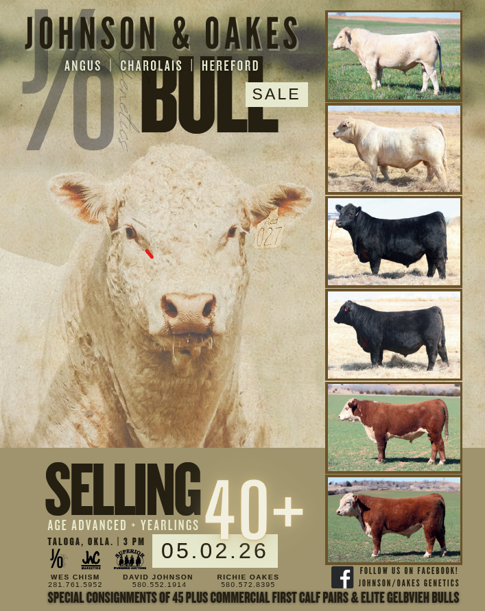 The sale will be held in Taloga, OK at 3 PM on May 2. Bull videos and live online viewing and bidding is available on Superior Livestock Purebred. More sale details at this specific link for the sale: