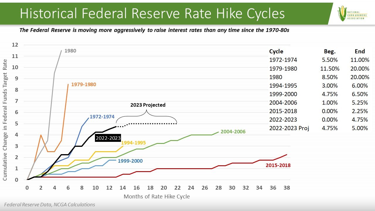 For farmers, the notion of a forthcoming recession and comparisons to the 1980s triggers thoughts of the 1980s farm economic crisis. While inflation and interest rates played a part in that, a multitude of other factors led to that outcome. If the U.S. moves into recession over the next year, production agriculture enters it better positioned than coming into the 1980s and could continue to remain strong and resilient, particularly if the recession is short. Although production agriculture runs in a race with the rest of the economy, it doesn’t always follow the same course. Other factors impacting production agriculture are economic conditions of trade partners and other producers, the value of the dollar related to other currencies, weather, geopolitical relationships, and policy related to agriculture.
