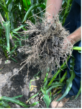 The combination of drought and soil compaction resulted in tomahawked roots in southern Iowa that hindered potassium uptake.