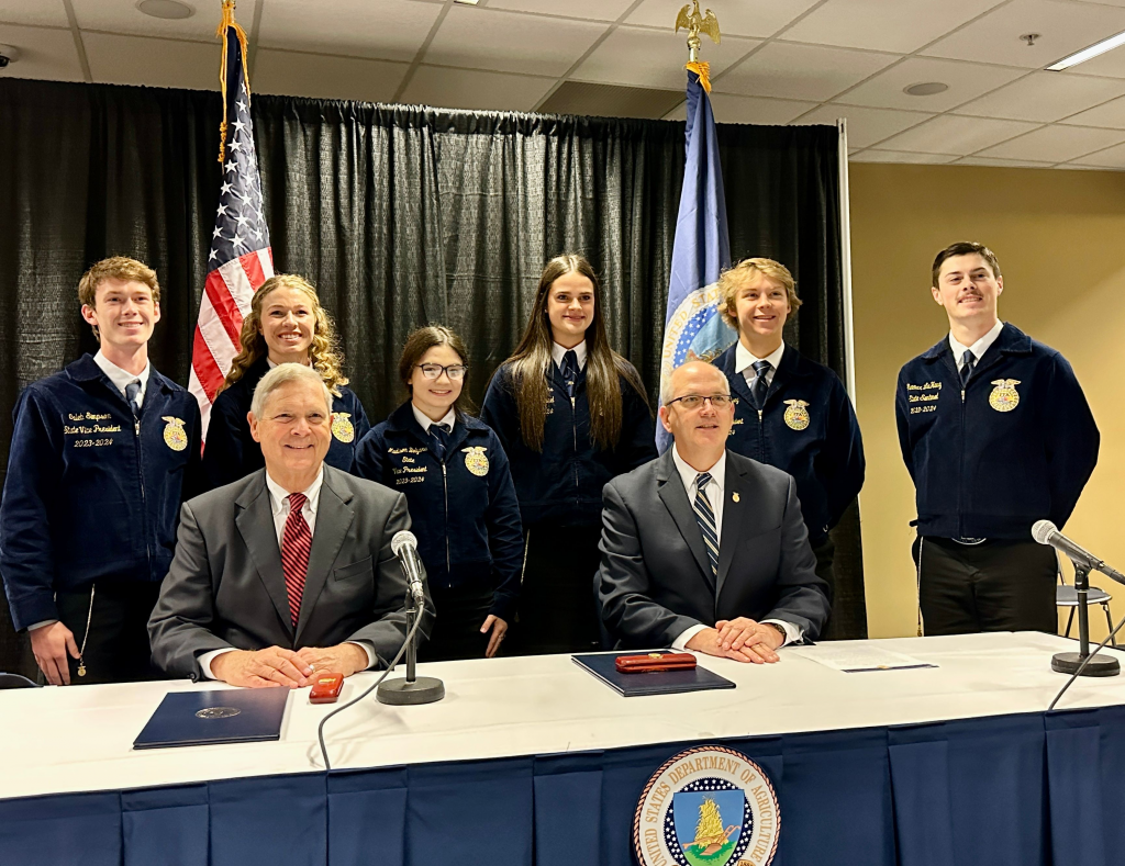 At the Thursday morning general session of the 2023 National FFA Convention, Agriculture Secretary Tom Vilsack addressed students, agricultural educators, and guests before signing a Memorandum of Understanding with the organization formalizing a partnership to prepare more students for careers in food, agricultural science, natural resources, and related fields.