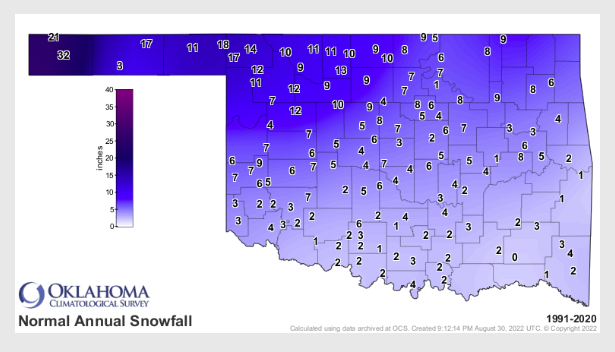 While we haven’t seen much of a wintery mix in Most of Oklahoma, Northwest oklahoa has seen some enhanced snow fall so far, “They are getting a jump start on their “normal” seasonal snowfall totals with 6-8 inches already this year.” Says McManus. Buffalo saw the most snow amounts at 7.8″.