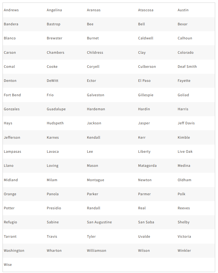 Texas: Childress, Collingsworth, Hardeman, Lamar, Red River, Wheeler, and Wilbarger