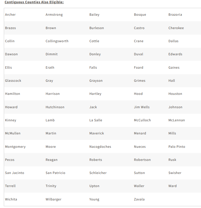 Contiguous Counties Also Eligible: