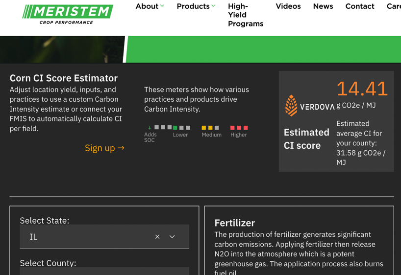 A new no-cost carbon calculator – allowing American farmers to anonymously measure the Carbon Intensity (CI) of their farm operations — was officially released here today by Meristem Crop Performance.