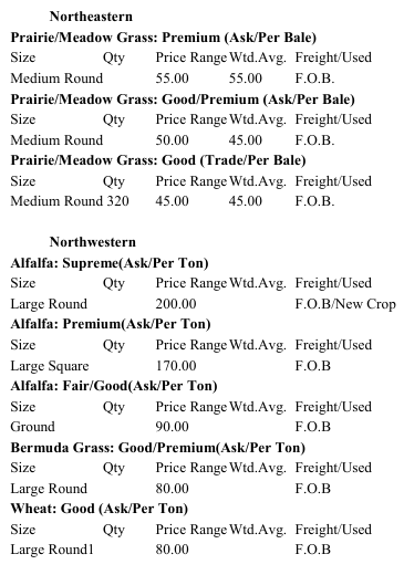 Trends: Alfalfa Large rounds & squares $175-$200 a ton – 2024 Grinding hay – No Trend