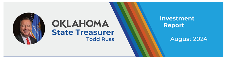 Best regards, ![]() STATE TREASURER cc: The Honorable Kevin Stitt, Governor The Honorable Charles McCall, Speaker of the House The Honorable Greg Treat, President Pro Tempore The Honorable Gentner Drummond, Attorney General The Honorable Cindy Byrd, State Auditor and Inspector View full report below. 2024 August Investment Report.pdf |