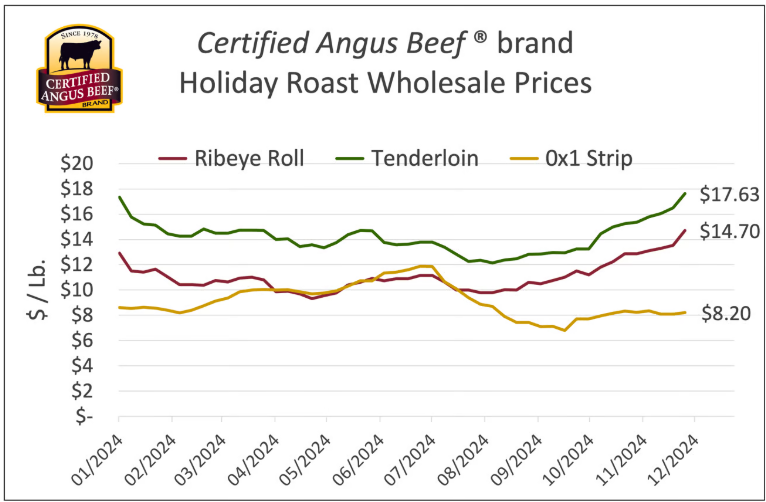 Beef demand has been exceptional in a period of larger year-over-year carcass tonnage beginning in the second quarter of 2024. In the past five years carcass cutout prices have averaged 2 to 3% lower than their fourth-quarter highs as the holiday demand push concludes through year’s end.