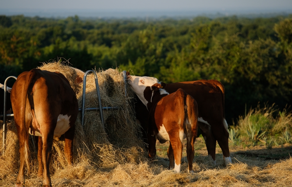 The landowner, Thomas, has noted other benefits to being intentional about where he feeds his hay. “I have three bale feeders in the areas where I know that I have lost a lot of topsoil over the years and the soil has thinned out quite a bit,” he described. “Keeping them down there, they are building that soil for me. I bring them up to the barn every morning and feed them, then they drift out.”