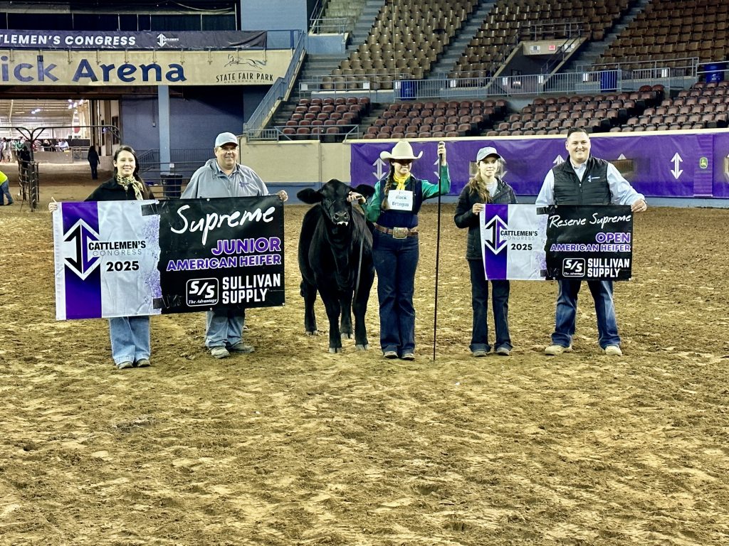 The 2025 American Supreme Open Heifer was the Beefmaster champion, Ellis Maddie. She was owned by `Kalli Ellis and Addison Poe of La Ward, Texas