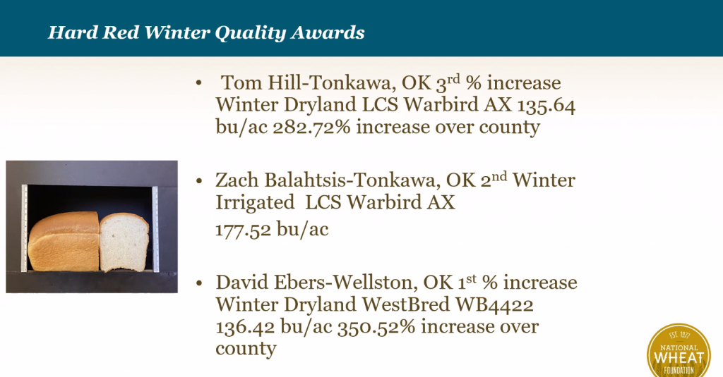 The three winners of the Hard Red Winter Wheat Contest were all from Oklahoma. They were: