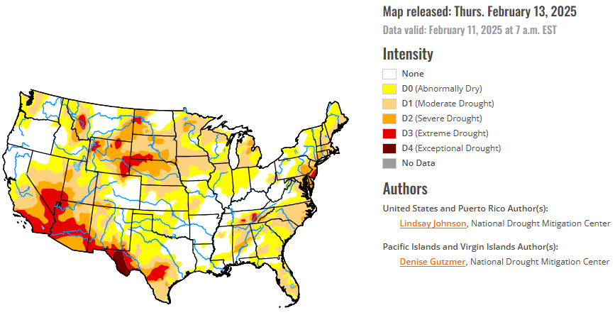 Severe drought or worse conditions are unchanged at 0.33 percent, since January 2.