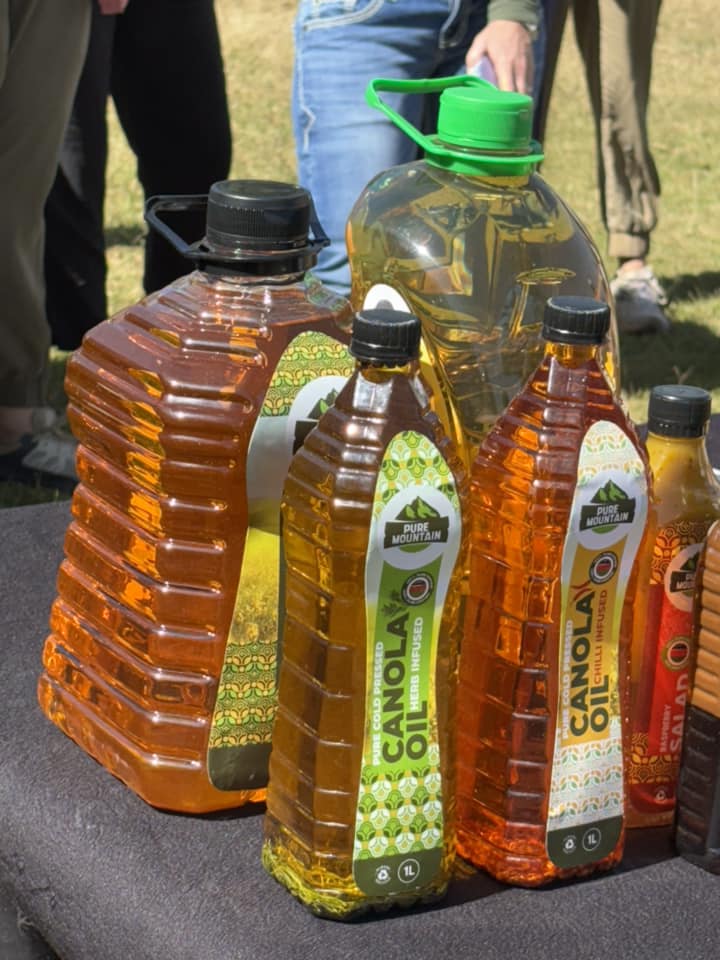 “Their farmers use crop rotation, minimum tillage, and retention of residue in the fields. They focus on soil health including soil biology, building up of micronutrients, and reduction of traffic in the fields. Their planter is an all-in-one implement – chisel, harrow, fertilizer, planter, and packer. They seed canola at a rate of 1 kg per hectare at a maximum depth of 1/2 inch. Fungicide is spayed on the crop once. They also have a cold press for canola at another facility where they make cooking oil, infused oils, and salad dressing.”