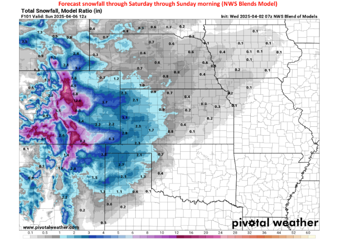 Adding to the unusual weather mix, a snowstorm is forecasted for the Panhandle and far northwestern Oklahoma. “I, for one (actually, I count three because I’M writing this thing), am not ready to go back to winter, but back to winter we will go, regardless, as the Panhandle and far NW OK deal with a snowstorm of some sort,” McManus stated, expressing his own reluctance to embrace the returning winter conditions.