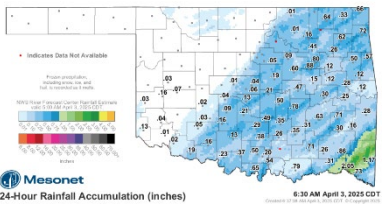 Today: Rain and some storms over the state will persist through the day adding to the rainfall amounts of the last twenty-four hours. While areas of western and northern Oklahoma have not received wetting rains yet, the system is expected to push increasing probabilities through the day and especially overnight. New wildfire occurrence today should exhibit minimal resistance to control offer excellent probability of successful initial attack. OFS resources that have been strategically prepositioned and moved throughout the state will begin demobilizing back to the home dispatch units to begin rehab and repair of equipment in preparation for the next round of wildfire activity. Thank you to the Fire Departments and communities that have hosted these resources regularly and continuously through the last month.