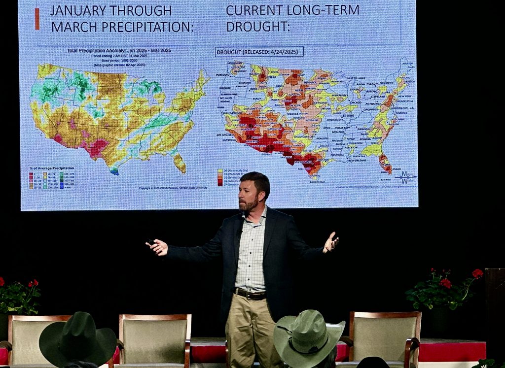 Senior Farm and Ranch Broadcaster Ron Hays is attending the 10th Annual Hemphill County Beef Conference in Canadian, Texas, and had the chance to speak with Atmospheric Scientist Matt Makens who provided a weather outlook for attending producers. Hays found one excerpt of the conversation to be particularly interesting regarding the abnormal amounts of rainfall the Southern Plains have received this month.