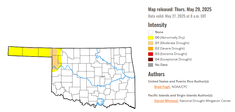 According to the latest Oklahoma drought monitor report, exceptional drought remains at zero percent, unchanged from the start of the calendar year.