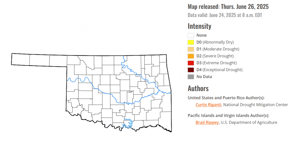According to the latest Oklahoma drought monitor report, exceptional drought remains at zero percent, unchanged from the start of the calendar year.