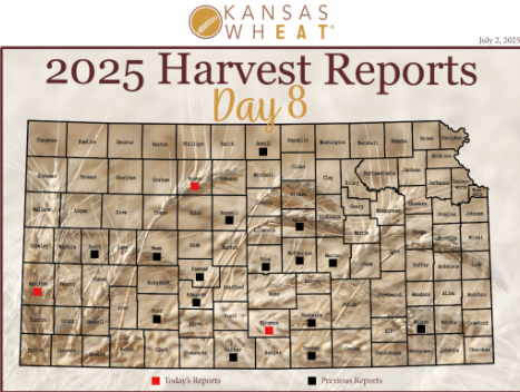 The 2025 Harvest Report is brought to you by the Kansas Wheat Commission, Kansas Association of Wheat Growers, Kansas Grain and Feed Association and the Kansas Cooperative Council. To follow along with harvest updates on social media, use #wheatharvest25. Tag us at @kansaswheat to share your harvest story and photos.