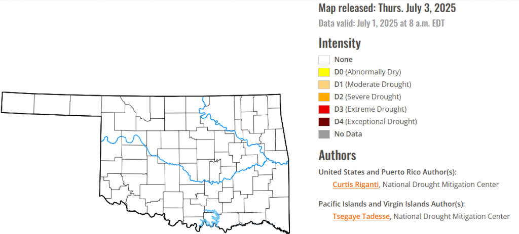 According to the latest Oklahoma drought monitor report, exceptional drought remains at zero percent, unchanged from the start of the calendar year.
