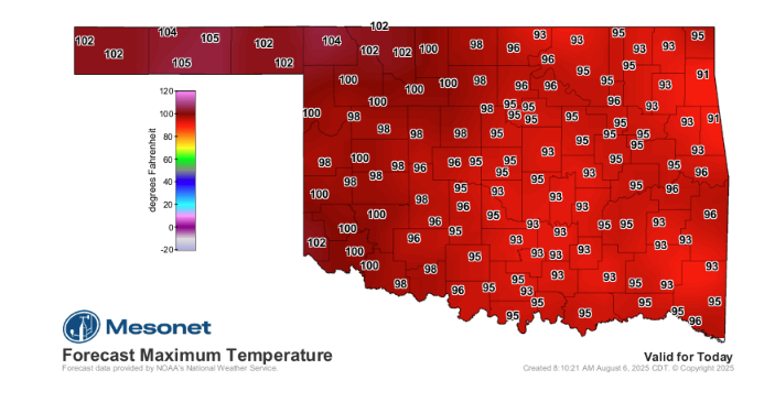 After a pleasant, unseasonably mild stretch of weather, Oklahomans are being reminded that it is, in fact, still August. According to State Climatologist Gary McManus, the state is transitioning back to a more typical weather pattern after a “burst of late-September weather” that saw temperatures drop over the past week.