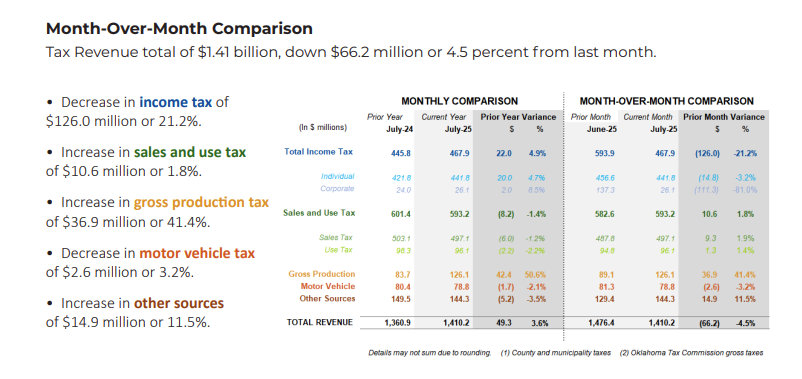 The complete July 2025 Tax Revenue Report is available at treasurer.ok.gov, including breakdowns by tax category, sector, and month.