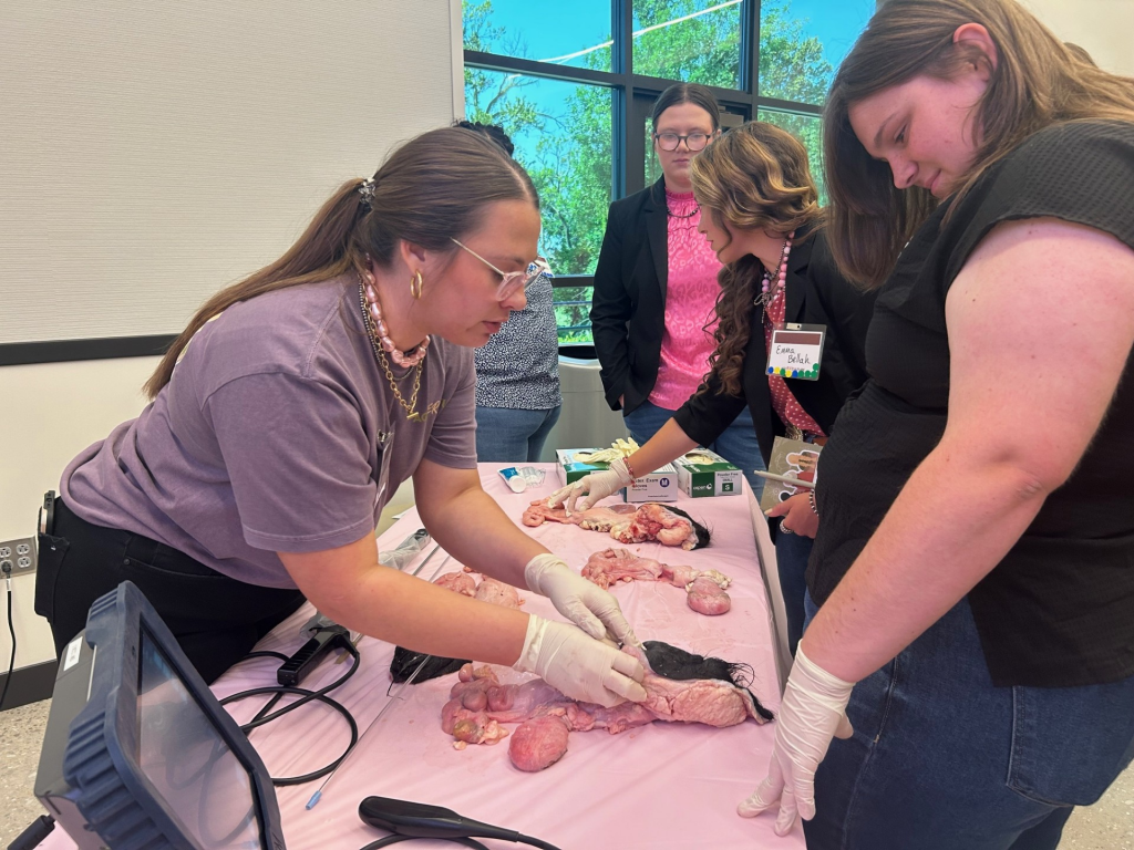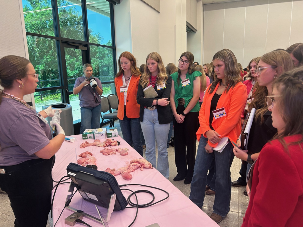 At the Agherculture Conference, associate farm reporter Carli Davenport spoke with Dr. Mandy Tolar, a mixed animal practitioner specializing in advanced reproductive technologies, who led a hands-on session on cattle reproduction. “We were showing the girls how we aspirate oocytes,” she explained. “We talked a little bit about what the cow’s reproductive cycle looks like, and how different hormones affect different areas of that. Based on those things, what we’re feeling internally when we’re feeling that reproductive tract and then showing them on the ultrasound, what different parts of that look like.” Participants even got to glove up and practice the techniques for themselves.