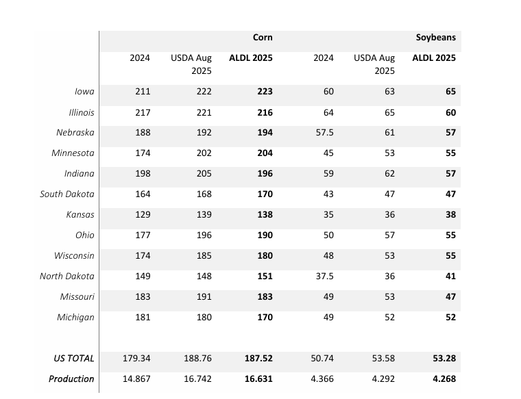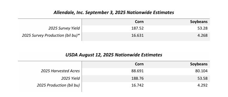 Allendale, Inc. a Chicago area agricultural commodity brokerage and analysis firm projected the US corn crop at 16.631 billion bushels and a soybean crop of 4.268 billion bushels.