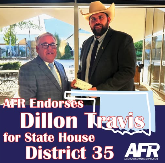 The American Farmers & Ranchers (AFR) Political Action Committee has endorsed Republican candidate Dillon Travis, Maramec, for State House District 35. The Republican primary for the vacant House seat will be held Dec. 9, 2025.