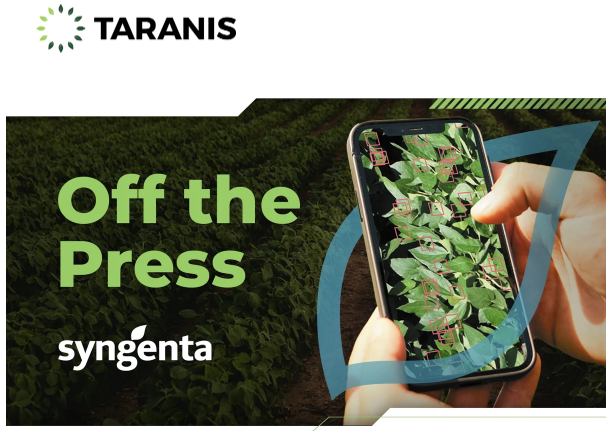 Syngenta Crop Protection, LLC, a global leader in agricultural innovation, and Taranis, a global leader in AI-powered crop intelligence, today announced they are formalizing their successful collaboration into a strategic partnership across the Midwest. The partnership will equip agricultural retailers with AI-powered crop management solutions, delivering innovative digital technologies that create significant value for both retailers and their grower customers. “AI is agriculture’s next transformative breakthrough,” said Vern Hawkins, Syngenta president of Crop Protection and regional director of North America. “The results from our 2025 collaboration with Taranis were clear ─ retailers saw how AI Crop Intelligence along with our leading crop protection portfolio created value for both their businesses and growers. This partnership allows us to scale that proven model across the Midwest.” The model empowers retailers to combine Taranis’ leaf-level AI Crop Intelligence with Syngenta’s industry-leading portfolio and agronomic knowledge, creating a comprehensive approach to field management that scales monitoring capabilities, while ensuring growers have the right solutions when issues are identified.