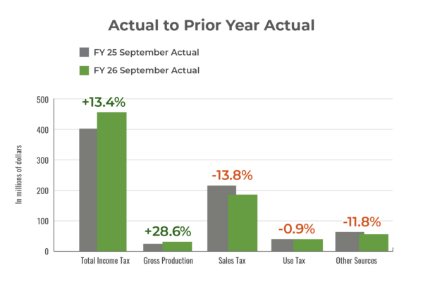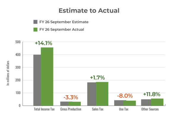 General Revenue Fund (GRF) collections in September totaled $769.5 million, which is $61.1 million, or 8.6%, above the monthly estimate. This total is also $23.4 million, or 3.1%, above collections from September 2024.