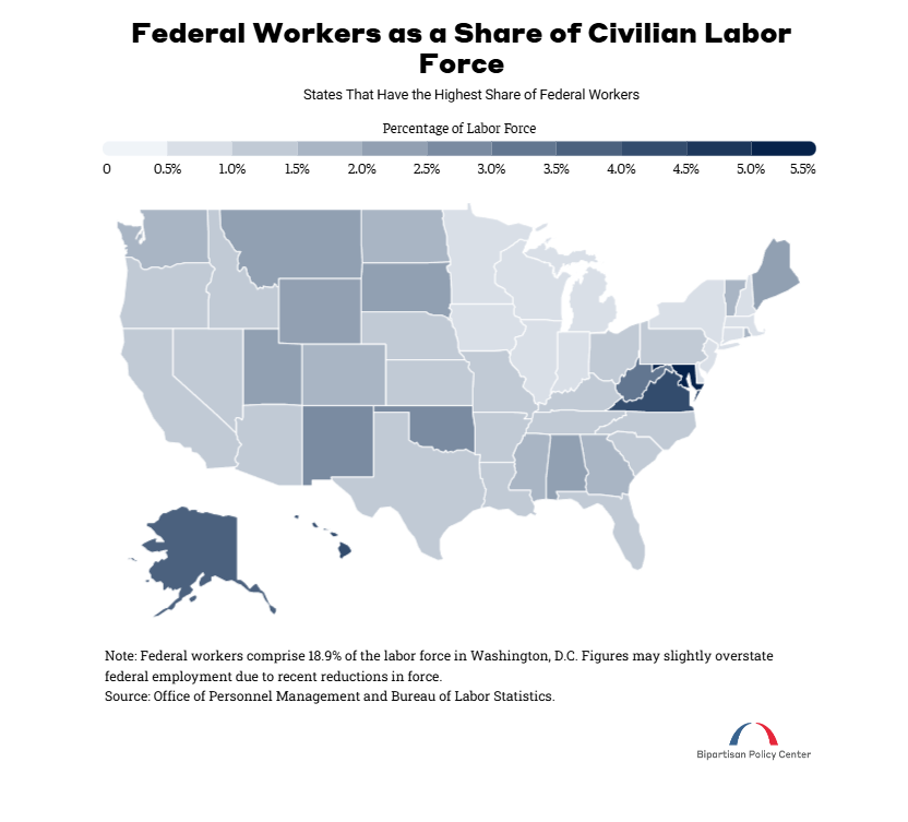 In total, the Congressional Budget Office estimates that as many as 750,000 workers (figures pulled directly from available agency contingency plans show closer to 700,000 workers) are furloughed at a cost of $400 million per day in missed pay. Based on BPC’s analysis of agency contingency plans, approximately 690,000 additional federal workers are working without pay (known as the “excepted” workforce).