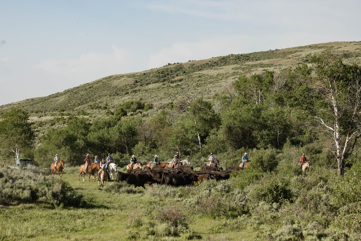 Caption: Blessed by numbers, the days they move cows are a sight—nine young cowboys and cowgirls atop their horses (or four-wheelers) peek out above the sagebrush.Caption: The cows are hardy, covering vast pastures of owned and BLM ground.