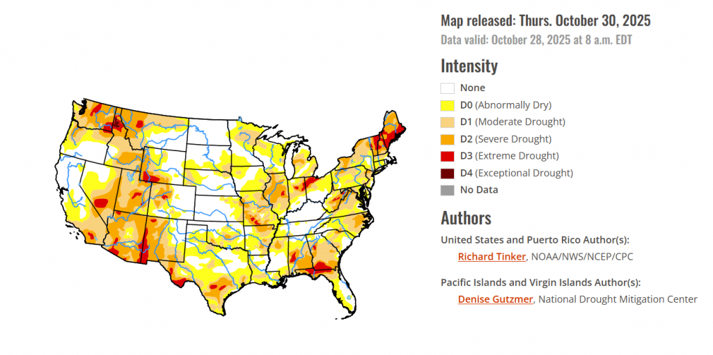 Widespread Dryness: Over 56 percent of the state is now experiencing abnormally dry to drought conditions versaus over 72 percent last week.