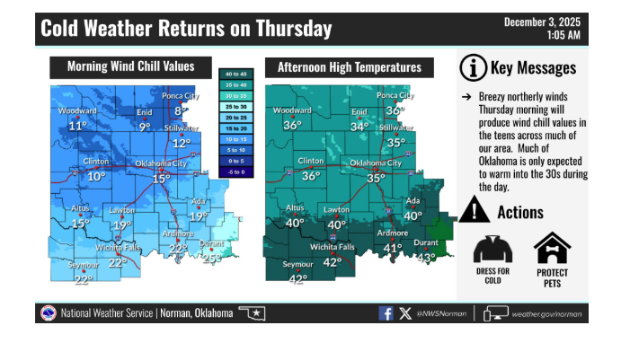 Safety and Preparedness With the approach of a “bigtime cold front,” conditions will likely be some of the coldest of the season so far. McManus advises Oklahomans to avoid getting stuck outside or skidding off the road in these temperatures.
