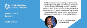 PORTFOLIO PERFORMANCE, DIVERSIFICATION, AND STRATEGYJune portfolio yielded 3.70%, up from 3.35% last year, with a weighted average maturity of 796 days.Total assets under management of $18.1 billion, up $1.8 billion in comparison to June 2024.Total portfolio contained 66.7% in U.S. Treasurys, 1.4% in U.S. government agencies,19.5% in money market mutual funds, 11.2% in mortgage-backed securities, 0.3% in certificates …