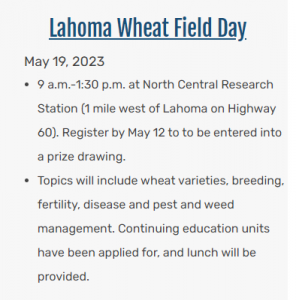 Lahoma Wheat Field Day coming up May 19th, 9am