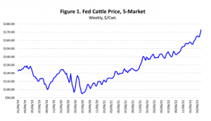 Dr. Derrell Peel, Oklahoma State University Extension Livestock Marketing Specialist, offers his economic analysis of the beef cattle industry as part of the weekly series known as the “Cow Calf Corner” published electronically by Dr. Peel and Mark Johnson. Today, Dr. Peel talks about fed cattle prices. The daily 5-Market negotiated cash fed cattle price …