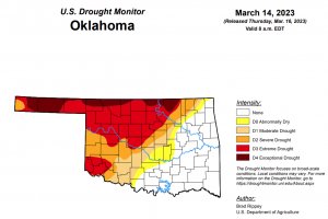 To view the Oklahoma Drought Map, click here. Oklahoma is going on week four now of no change in the exceptional drought and extreme drought or worse categories. Exceptional drought remains at 8.86 percent, and extreme drought or worse remains at 36.64 percent. Severe drought or worse is virtually unchanged but increased slightly from last week’s …
