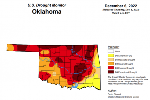 According to the Oklahoma Mesonet, the state sees a couple more chances of rainfall into the weekend and early next week. In Oklahoma, exceptional drought is up just slightly from last week’s 19.77 and is now at 19.88. Extreme drought or worse is unchanged from last week at 64.01 percent. Severe drought or worse is …