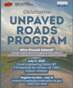 Oklahoma Unpaved Roads Program is designed to assist local agencies in learning cost-effective strategies and techniques for mitigating drainage issues and improving the performance of unpaved roads. This is done by providing education on environmentally sound practices that improve drainage, reduce sediment and reduce maintenance costs of unpaved roadways. Grants up to $75,000.00 are available …
