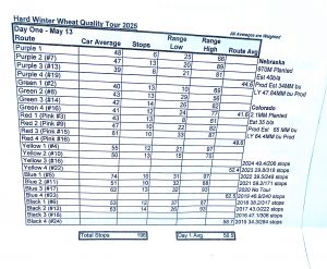 Despite traveling through areas that had wheat fields suffering from drought and facing a wide spread Wheat Streak Mosaic virus- crop scouts on the first day of an annual three-day tour of Kansas projected an average yield for hard red winter wheat in the northern portion of the state at 50.5 bushels per acre (bpa). …