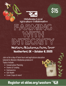 oin us on Wednesday, October 8th in the Weatherford area to gain FREE* resources and agricultural education from local agencies and producers. Topics will include: conservation planning, grants & funding, soil health, producer success stories, and more! *Note: $15 pre-payment required to cover the cost of lunch. Due to funding restrictions, we are unable to pay …