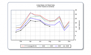 According to recent data from the Association of Equipment Manufacturers (AEM), Canadian sales of combines jumped 52.2% in August 2025 compared to the year before. Sales were also up 2.3% year-to-date. U.S. sales of combines fell 34.6% while sales of agricultural tractors dropped 8.2% in August 2025 compared to the year before. “While the rise in Canadian …