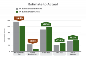 General Revenue Fund (GRF) collections in November totaled $573.1 million, which is $28.1 million, or 4.7%, below the monthly estimate. This total is also $28.5 million, or 4.7%, below collections from November 2024. GRF collections for the first five months of fiscal year 2026 stand at $3.2 billion. This is $85.4 million, or 2.7%, above …