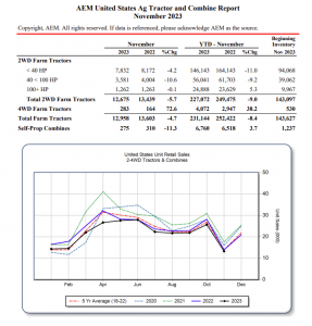 Unit sales of 4-wheel-drive agriculture tractors grew in both the U.S. and Canada in November, continuing a strong final quarter of 2023, according to the latest data from the Association of Equipment Manufacturers (AEM). In the U.S., the November data shows that 4-wheel-drive tractors grew year-over-year 72.6 percent, the only segment to see growth for the month. Year-to-date, 4-wheel-drive …