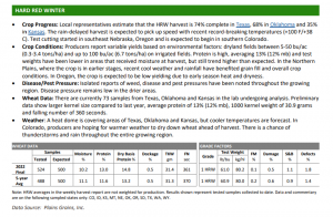 Despite delays due to rain and humidity, HRW harvest is now progressing in 9 states with data from 141 samples included in this week’s report. The SRW harvest is steadily progressing and is more than 80% complete. The PNW continues to trend hot and dry as harvest begins on SW winter wheat. Cooler temperatures across …