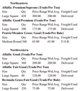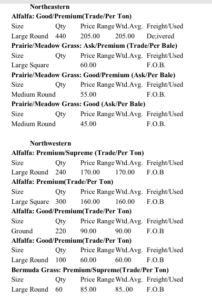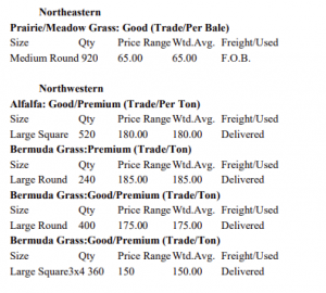 Compared to the last report: Hay is slow to steady. The demand in eastern Oklahoma is high. The central and western part trade is slow to moderate. Trends so far: Alfalfa Large squares $200-$225 a ton, Alfalfa Rounds – No Tred, Grinding hay – $170-$180 a ton, Bermuda 5×6 rounds – $100-$120 a bale, Bermuda …