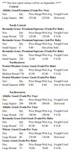 Compared to the last report: Hay is slow to steady. The demand in eastern Oklahoma is high. The central and western part trade is slow to moderate. Trends so far: Alfalfa Large squares $200-$225 a ton, Alfalfa Rounds – No Tred, Grinding hay – $170-$180 a ton, Bermuda 5×6 rounds – $100-$120 a bale, Bermuda …