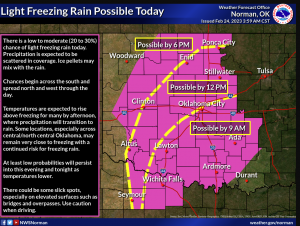 Severe Weather is forecasted for the state on Sunday. Still, State Climatologist Gary McManus says today’s weather may also present some problems: “Everybody is staring at Sunday when today might hold some unpleasant impacts as well. There is a chance for freezing mist/drizzle/rain throughout the day where the temperatures remain below freezing. It has been …